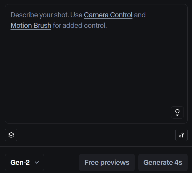 Hier könnt ihr euren Prompt eingeben. Über den Settings-Button unten rechts könnt ihr weitere Detaileinstellungen vornehmen. Das Drop-Down-Menü, in dem momentan „Gen-2“ angezeigt wird, lässt euch verschiedene Modelle auswählen, die unterschiedliche Qualitäten haben und unterschiedlich schnell generieren.